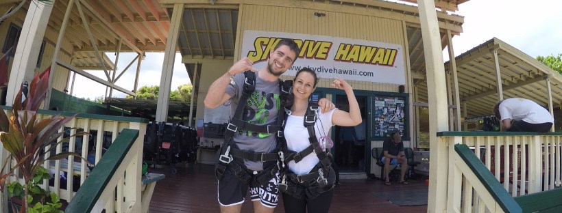 Na odporúčanie kamarátok, ktoré boli skákať minulý rok a nevedeli si to vynachváliť, sme sa rozhodli, že si pôjdeme skočiť aj my. Shuttle bus nás ráno zaviezol na letisko, na druhú stranu ostrova, kde sme si pozreli krátke video o tom čo nás čaká a následne podpísali 7 strán, že vieme, že sa môžeme zraniť poprípade zabiť a je to naša chyba, však ako povedal jeden z inštruktorov, normálni ľudia z lietadla neskáču 🙂 Každý mal prideleného inštruktora, ktorý ho obliekol do popruhov a dal mu pár inštrukcii o zoskoku. Samozrejme, že som vychytala toho najbláznivejšieho. Pri zmienke o svadobnej ceste mi oznámil, že som si mohla vybrať lepšie, ale že ak to neprežije budem mať druhú šancu. Nachystaní v postrojoch a náhla zmena počasia. Našťastie sa počasie umúdrilo a rýchlo nás nahnali do auta, ktoré nás zaviezlo k lietadlu. Keďže sme môjho inštruktora zabudli na letisku, tak mi pred štartom oznámil, že nevie či ma má ešte rád a asi nastal čas umrieť. Cestou som ho prehovorila, aby to aspoň o deň odložil. Vo videu bola baba, ktorá si to rozmyslela, odovzdala okuliare a zviezla sa lietadlom naspäť. Takúto možnosť som tam reálne nevidela, ale bolo to skvelé. Po otvorení padáka sme mali nádherný pohľad na celý ostrov a narozdiel od môjho manžela som si to naozaj vychutnala. Celý zelený mi na pristávacej dráhe oznámil, že sa cíti ako po kvalitnej žúrke. Poobede si musel oddýchnuť a ja som nabudená stihla ešte nákupy, poprechádzať sa aj poležať na pláži. Úžasný zážitok.