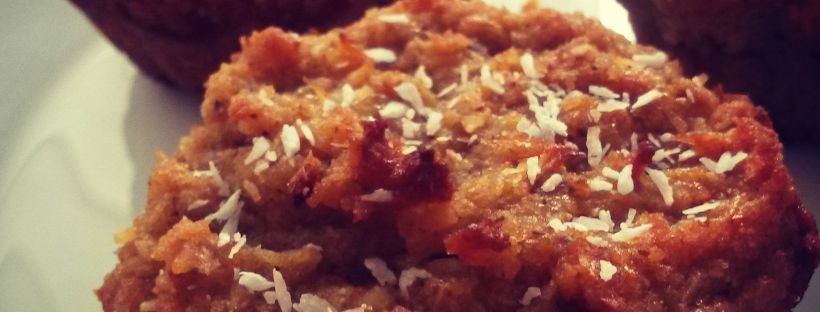 Suroviny: 1/2 hrnčeka strúhaného kokosu, 1/2 hrnčeka mandľovej múky/ mandlí, 1 olúpané a na jemno nastrúhané jablko, 1 vajce, 3 PL masla/kokosového tuku, 3 PL medu, 1 ČJ prášku do pečiva, 1/2 ČJ mletej škorice, 1/4 ČJ nastrúhaného muškátového orieška, štipku soli Continue reading
